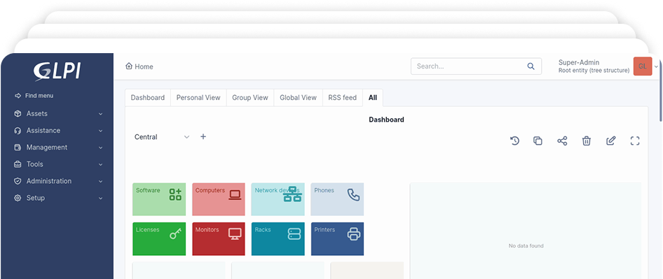Organización total de activos, tickets y servicios.