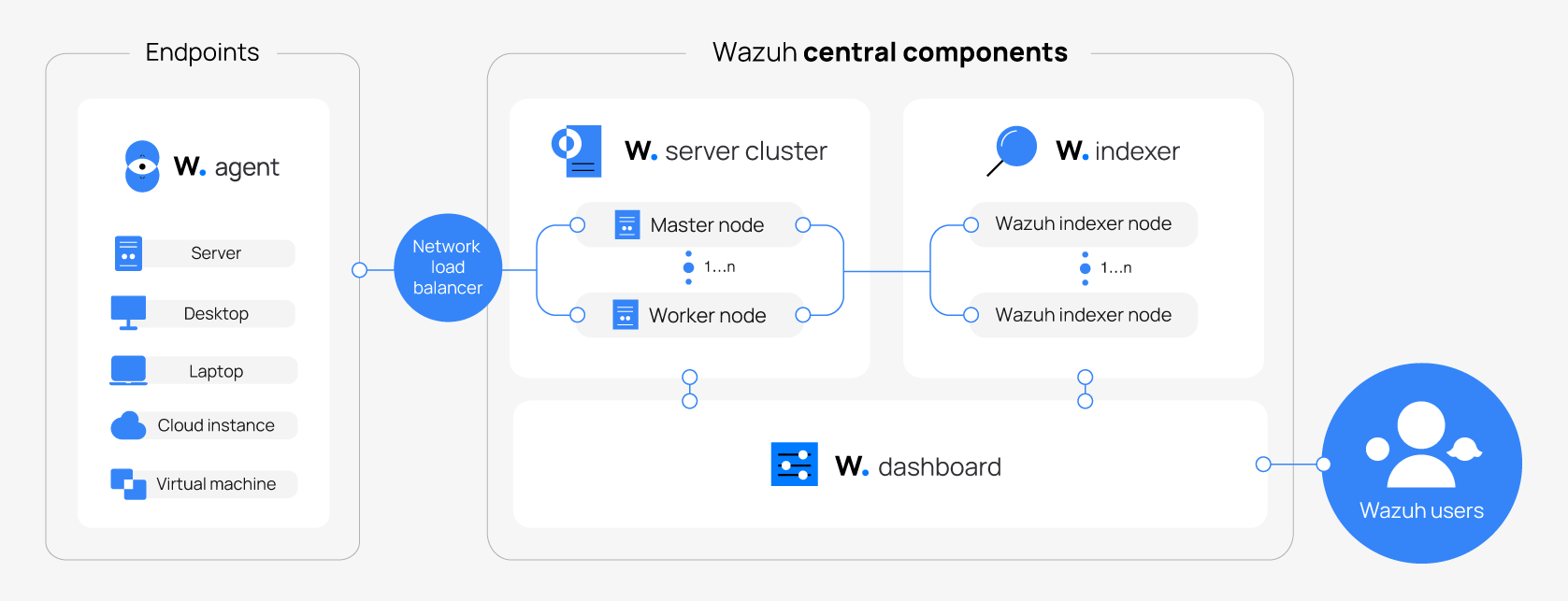 Wazuh es una plataforma Open Source de seguridad y monitoreo de infraestructura. Ofrece detección de amenazas, monitoreo de integridad, análisis de logs, y cumplimiento normativo, todo desde una única solución centralizada.